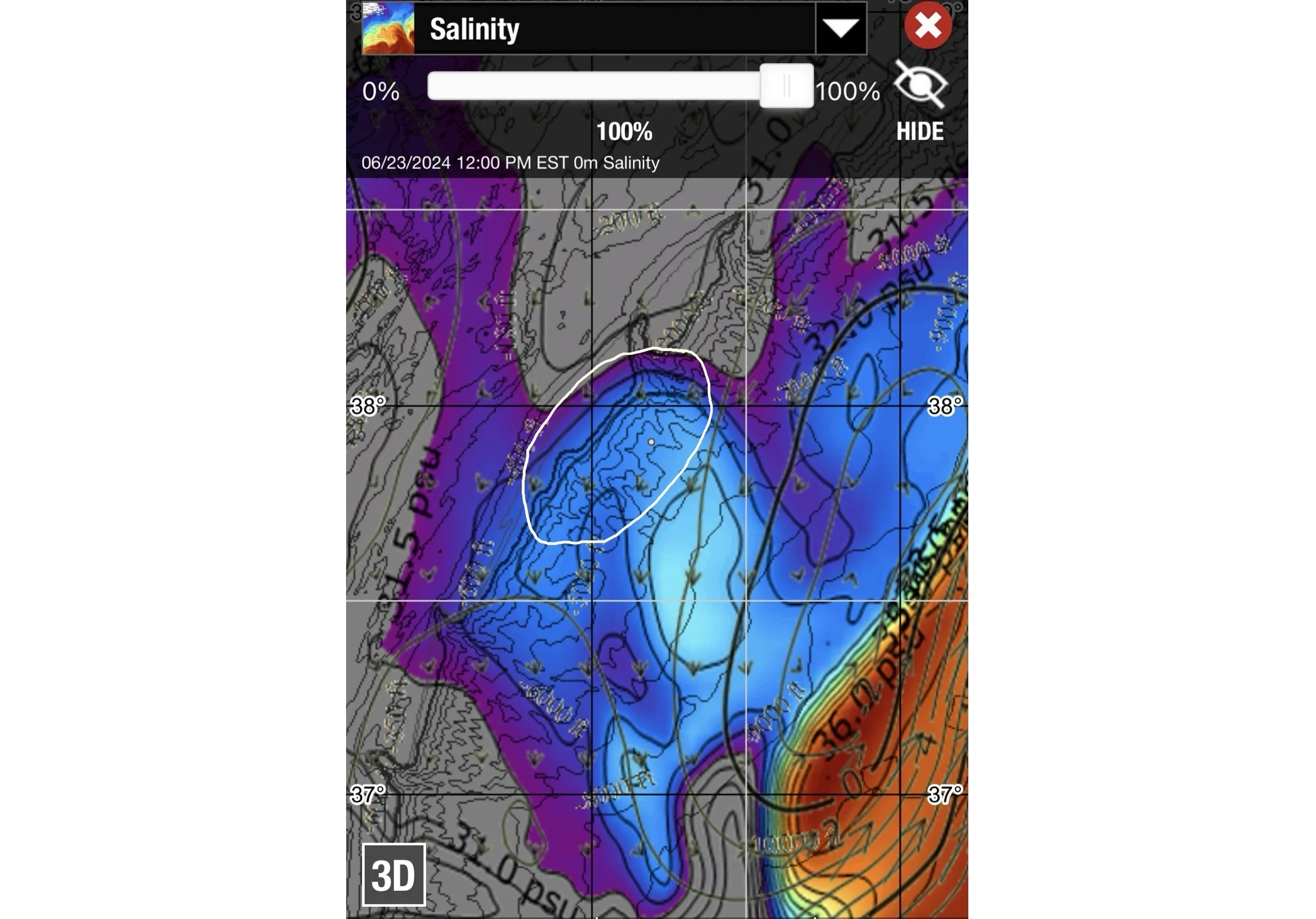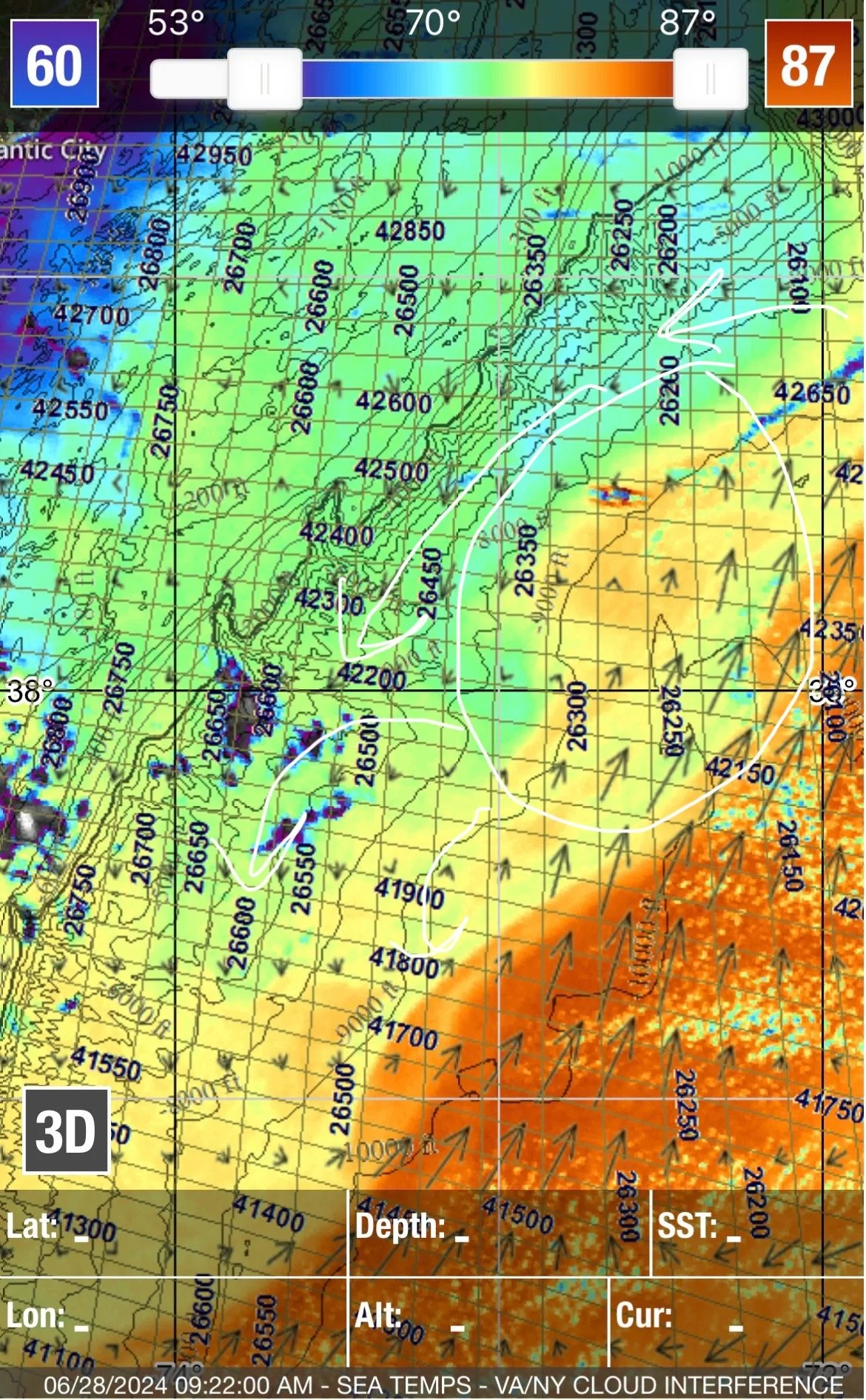 We’re Keeping our eye on an eddy that has formed just east of the Baltimore Canyon and is slowly pushing south, it matches up with some blue water pushing into that same area, which should make for some good fishing! We will have to keep an eye and see how the weather effects the water but as of now that is the area we are looking to fish next!
