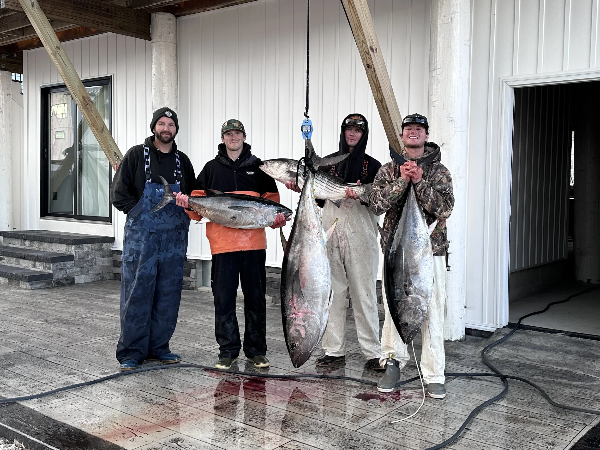 Yesterday a few boats went out in search of the last bluefin of the season, but the first for 2025. Capt. Monty on the morning star went out and found a handful of unders on the Morning Star. Chris Huk also got his limit as well as released a few, with an awesome day of fishing. Then Chase Ereble of Chasin’ Tides found a giant bluefin at 97” and 442 lbs! These bluefin are still up and down the 20 line on the warmer eastern side of most of the lumps and structure. We also were able to get out on the little boat inshore yesterday and tore up some school sized striper! All 18-24” fish, and we banged em up catching 21 in just under 2.5 hours, all at the 90 bridge, 90, 50, and Verrazano as well as Femwick Ditch all hold striper this time of year and can be a blast when they’re chewing! Weather forecast is looking pretty gnarly the next 2-3 days, looks like better hunting weather than fishing! lol if y’all are bored and snowed in the house check out our YouTube channel! We’ll be doing more and more live streams where we hop on and do live Q&A’s and just talk fishing with you all and other followers! We may do some private or “members only” live streams in the future as well! We will also have more educational style/tips videos coming to the members only video library soon! Good luck and tight lines if you do fish!