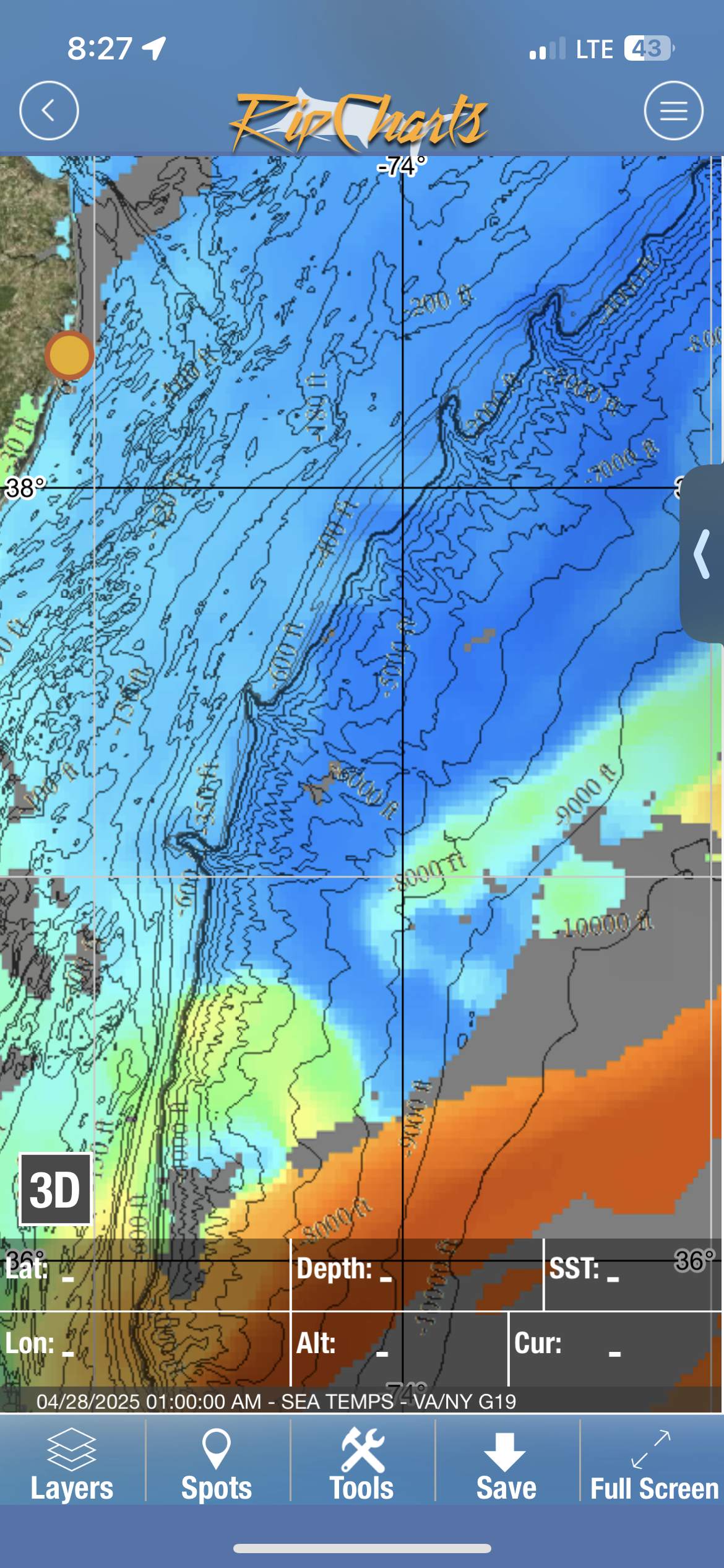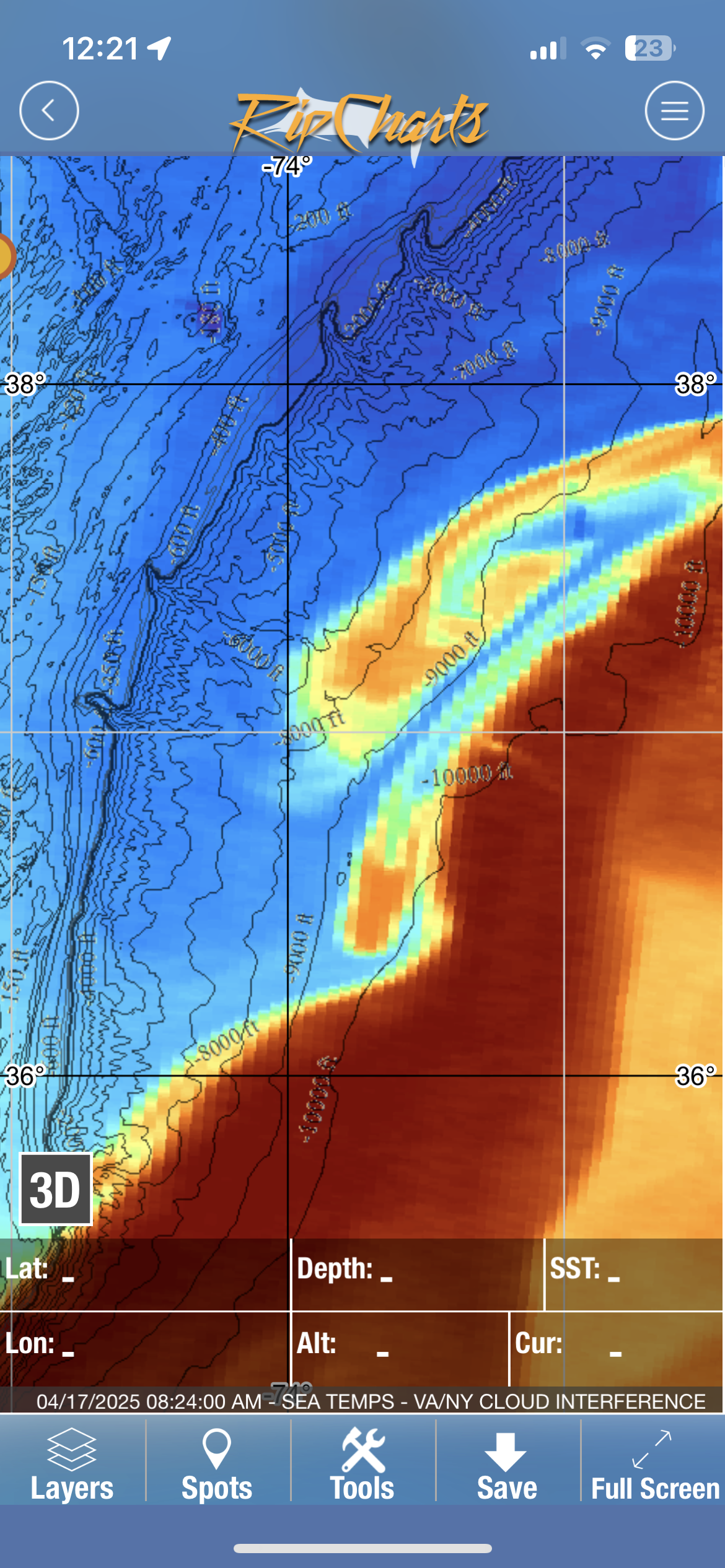First of all if you're seeing or reading this YOUR A LEGEND! We really appreciate those of you who have supported us and stuck with us here, and will not forget who you are!! Hopefully you guys have been finding these reports and info useful, it’s been working for us! Just had to say thank you and you guys are awesome! NOW There is a beautiful piece of warm blue water that has slid right into our Mid Atlantic canyons here in the last couple days, and boy does it look fishy!! It appears that filament or piece of water peeled off the Gulf Stream up to the north east, and spun off and made its way down through the northern canyons and has now landed right around the Baltimore Canyon. Obviously a run to the canyon this time of year is a bit unconventional, and can even be dangerous with the frigid cold temperatures, but with the right safety gear and equipment, and decent weather and conditions, that run could pay off HUGE! Down in OBX that same kind of water has been holding Giant BFT as well as Big Eye’s, and I’d be willing to bet they’re in that water here too! Can you imagine a January Big Eye!? We are gonna be keeping a close eye on this piece of water, as well as the weather forecast and see if or when we can get a window to possibly poke out and see what’s out there! It looks like that water is pushing south west with the wind and current, would be ideal if by Sunday it lands right in the tip of the Washington in the big eye hole, but only time will tell! Like I said we’re gonna keep a close eye on it, and might possibly head out there Sunday if the weather and conditions hold up! Good luck and tight lines, we’ll check back in with y’all soon!