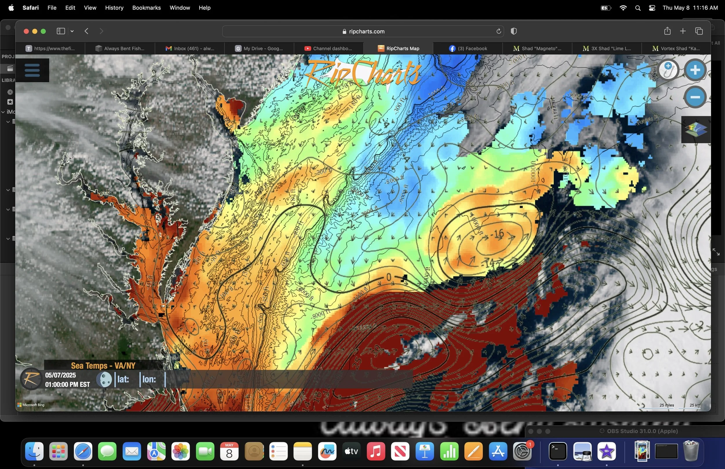 Man the anticipation of seeing when the first yellowfin will be caught is killing us! We want to get out there so bad, but we still have to be logical about burning fuel and running all over creation, if we are gonna go out and fish we at least want a solid eddy or filament of water that we know we can get to, and unfortunately the best water we see is still a long haul. We are optimistic though, it looks like there is a couple filaments up east of the poormans and Wilmington as well as the huge eddy down south east of the Norfolk, so we will be keeping a close eye on the weather and conditions as well as the SST shots, as of right now we are thinking the next best opportunity will be Sunday! Today is def flat calm conditions however we just don’t see the water quite yet and think it makes more sense for us to wait a couple more days. For sea bass guys, deep drop for tile, flounder, tautog ( closing soon or maybe closed today) it should be perfect conditions with great water temps and water clarity! Enjoy this weather tight lines and stay bent! We’ll check back in soon!